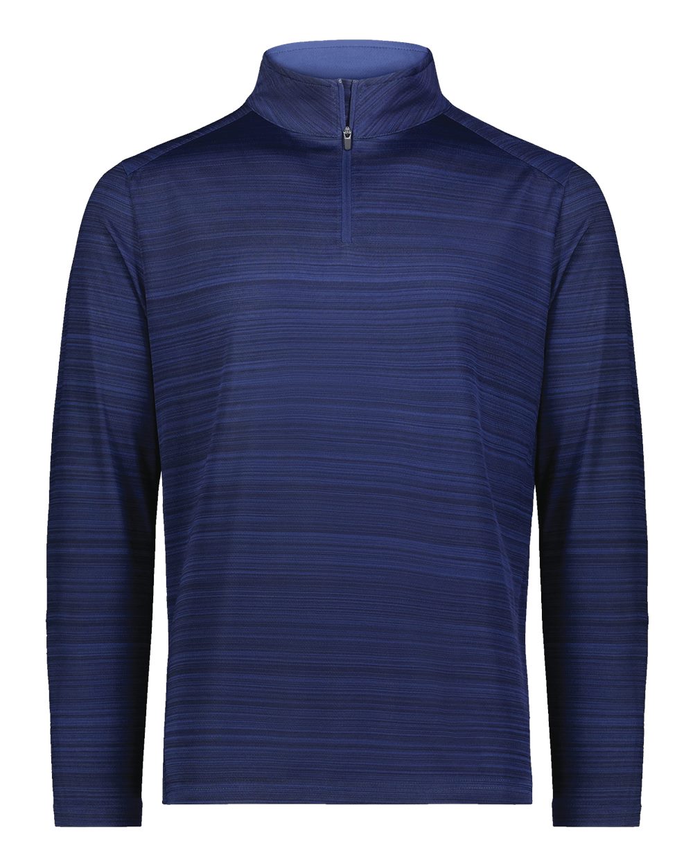 100% polyester interlock textured knit Tonal stripe design Moisture-management properties Cross grain back yoke Set-in sleeves with rolled forward...