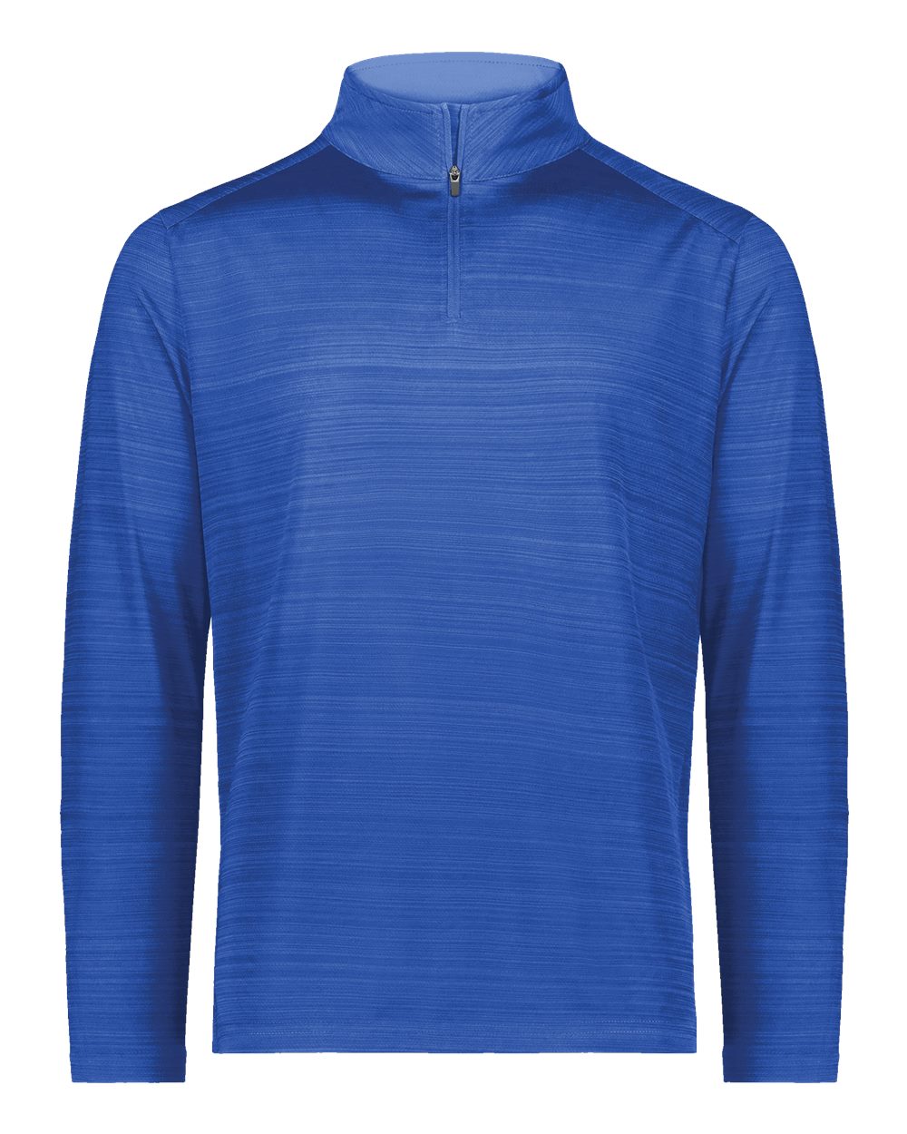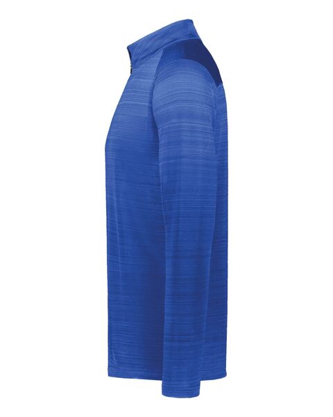 100% polyester interlock textured knit Tonal stripe design Moisture-management properties Cross grain back yoke Set-in sleeves with rolled forward...