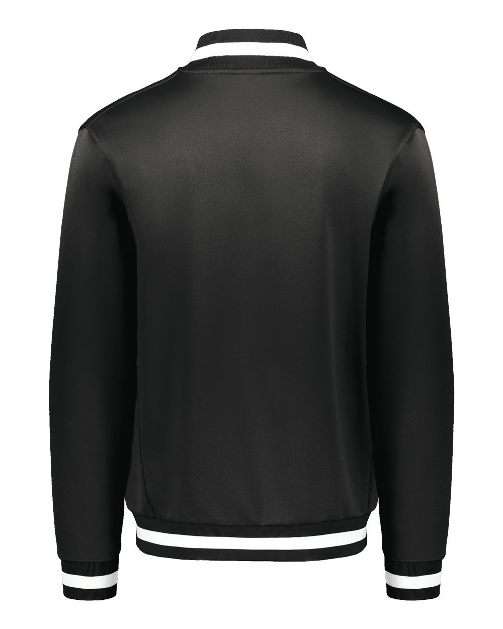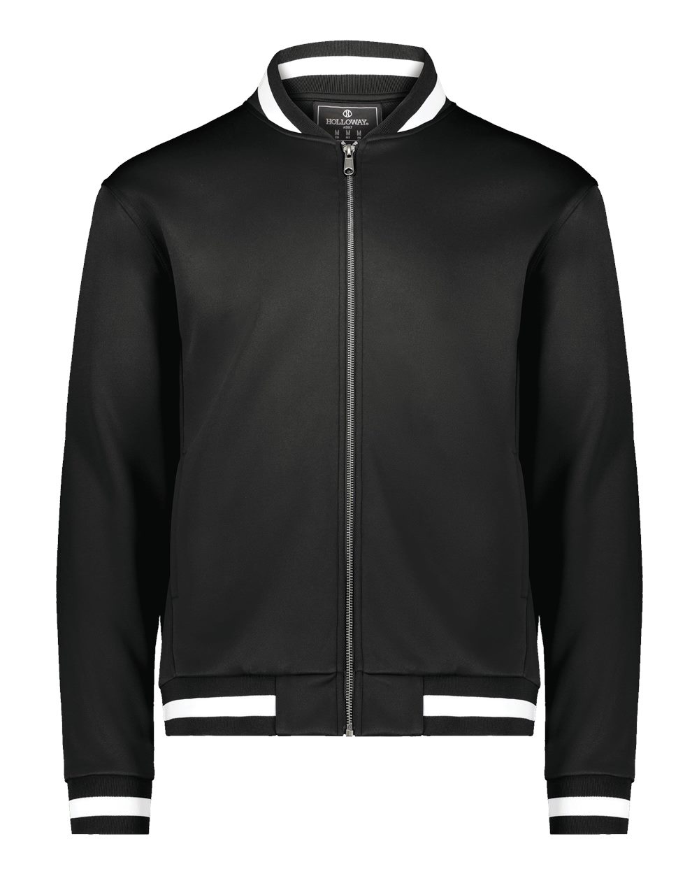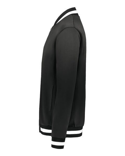 10.3 oz./yd_, 100% polyester double-knit Striped ribbed-knit collar Set-in sleeves Front pockets and dual internal pockets Striped ribbed-knit cuffs...