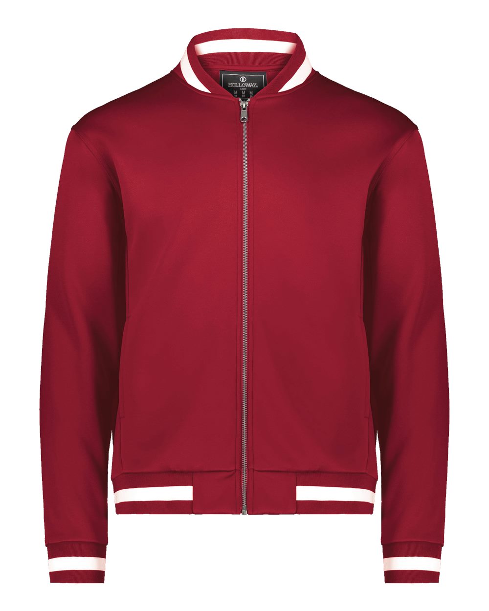 10.3 oz./yd_, 100% polyester double-knit Striped ribbed-knit collar Set-in sleeves Front pockets and dual internal pockets Striped ribbed-knit cuffs...
