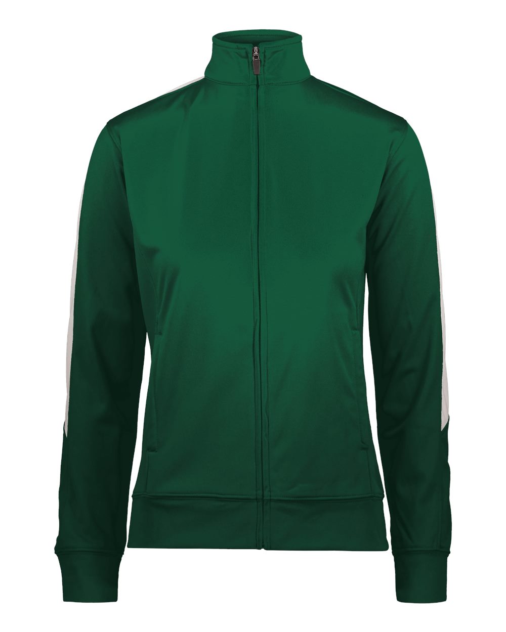 100% heavyweight polyester matte brushed tricot Ladies' fit Contrast color inserts Set-in sleeves Front pockets Self-fabric cuffs and bottom band...