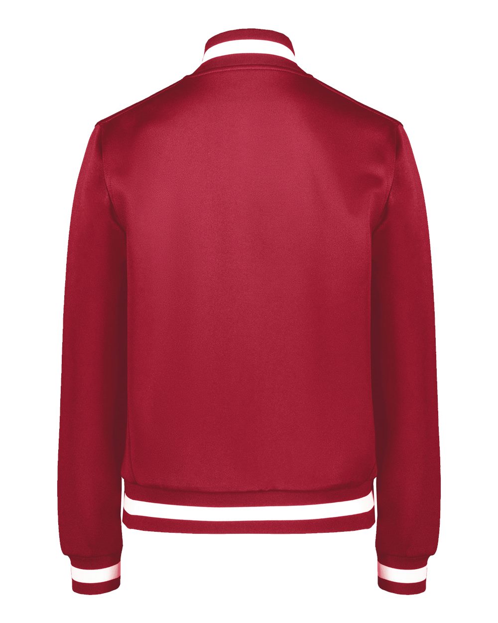 10.3 oz./yd_, 100% polyester double-knit Striped ribbed-knit collar Set-in sleeves Front pockets and dual internal pockets Striped ribbed-knit cuffs...