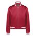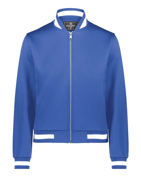 10.3 oz./yd_, 100% polyester double-knit Striped ribbed-knit collar Set-in sleeves Front pockets and dual internal pockets Striped ribbed-knit cuffs...