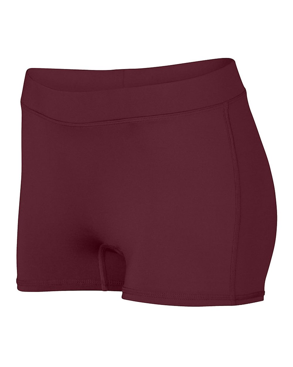 88/12 polyester/spandex knit Wicks moisture Low rise, wide flat 1.5" waistband No front seam U-shaped gusset Flatlock stitching Pad print label