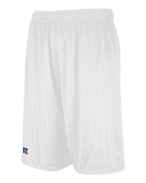 2.8 oz./yd_, 100% polyester tricot mesh Russell Athletic patented Dri-Power moisture wicking keeps you cool & dry  Non-pocketed shorts Covered...