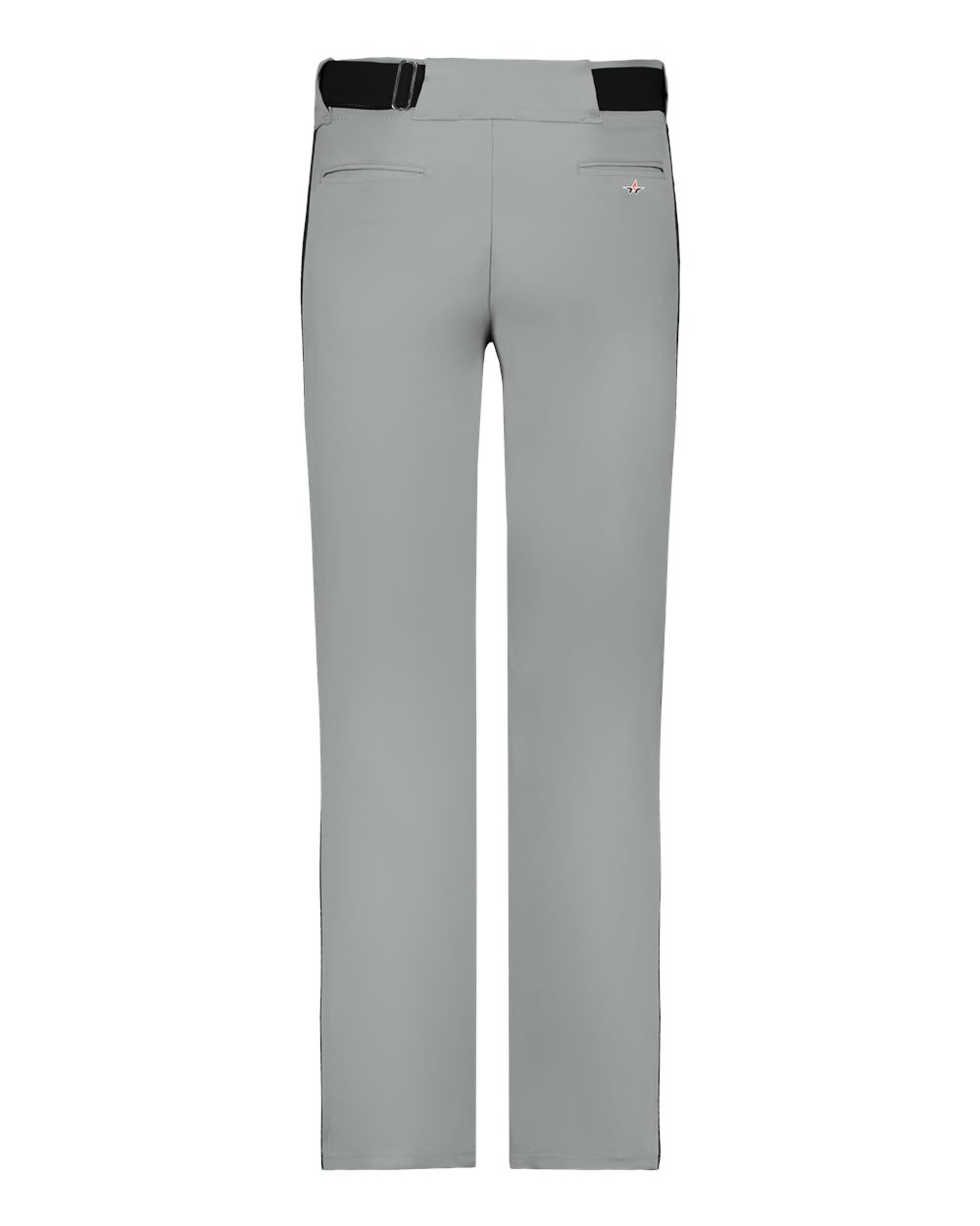 12 oz./yd_, 100% double knit polyester Wide leg open bottom Open bottom non-traditional Contrasting stripe 3/16" down sides Five pro-style belt...