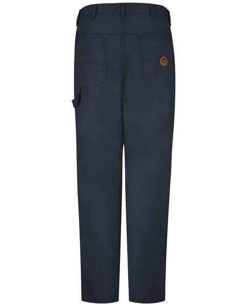 10 oz./yd_, duck 65/35 polyester/cotton Two deep scoop-front pockets Rule pocket on right leg Hammer hoop on left leg