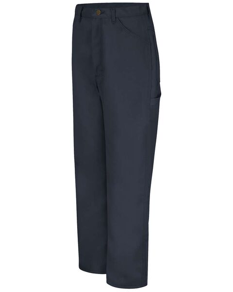 10 oz./yd_, duck 65/35 polyester/cotton Two deep scoop-front pockets Rule pocket on right leg Hammer hoop on left leg