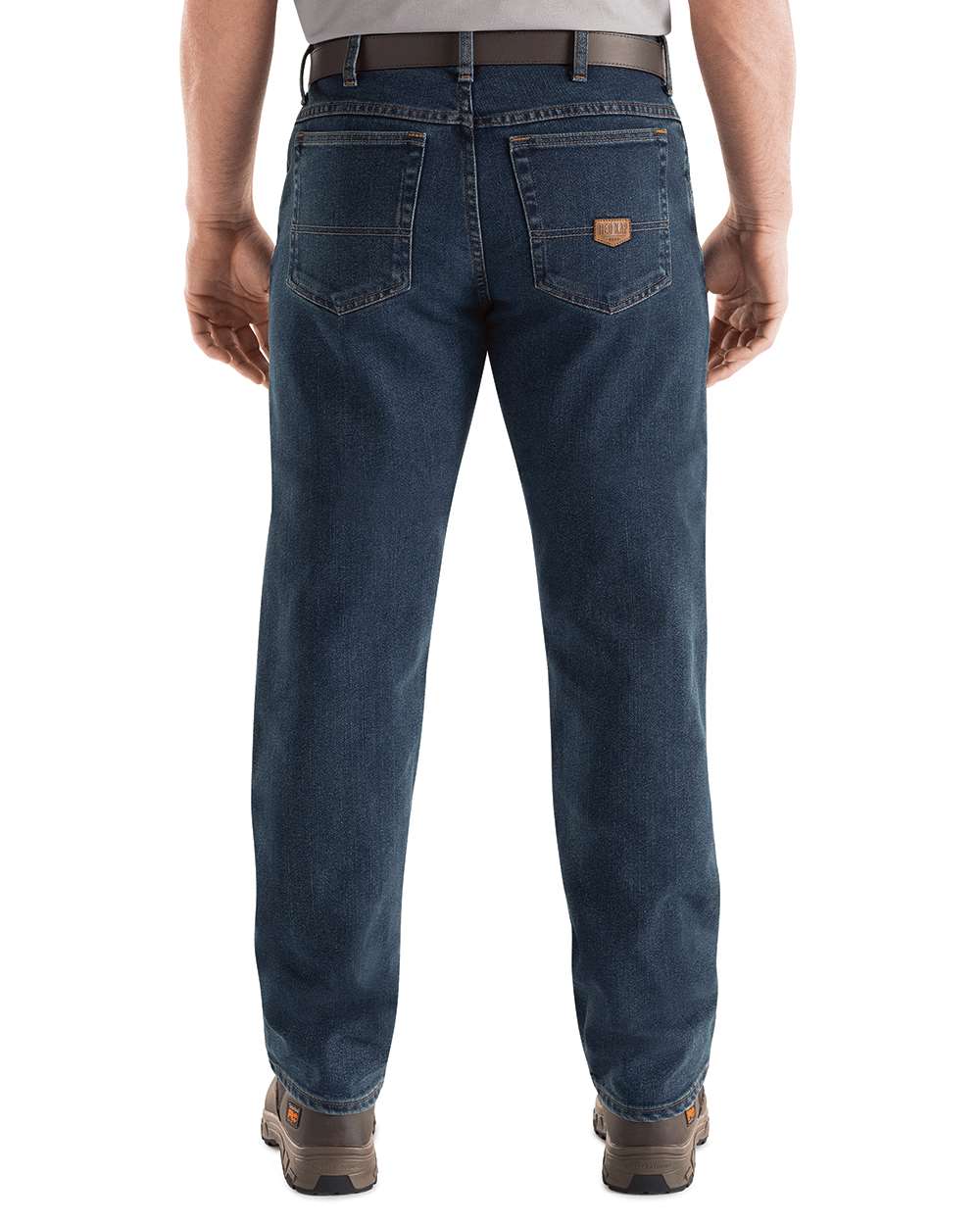 12.75 oz./yd_, Flex Denim, 68% Cotton/ 32% Polyester Metal button, Brass ratcheting zipper Traditional five-pocket jean styling Industrial Laundry-...