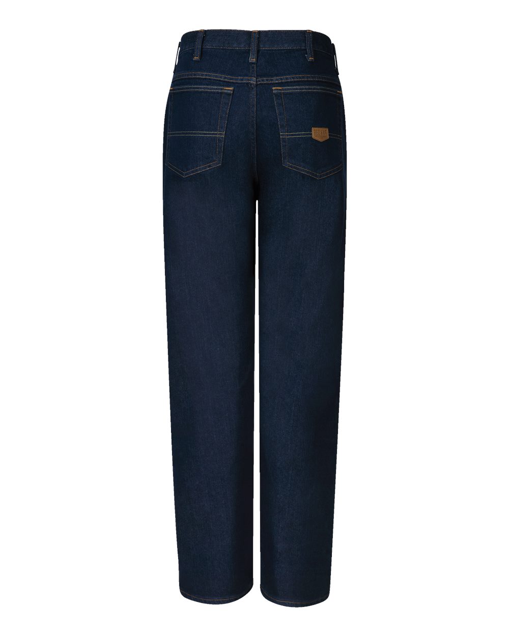 12.75 oz./yd_, Flex Denim, 68% Cotton/ 32% Polyester Metal button, Brass ratcheting zipper Traditional five-pocket jean styling Industrial Laundry-...