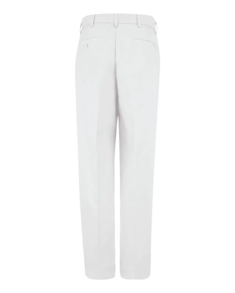 7.5 oz./yd_, 65/35 polyester/combed cotton TouchTexª twill Soil-release finish Button closure, plain front Two front slack style pockets Two back...