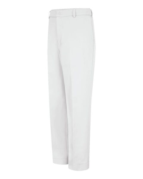 7.5 oz./yd_, 65/35 polyester/combed cotton TouchTexª twill Soil-release finish Button closure, plain front Two front slack style pockets Two back...