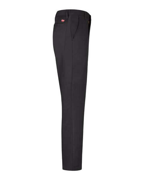 - Two slack-style front pockets, two set-in hip pockets, left pocket has button closure