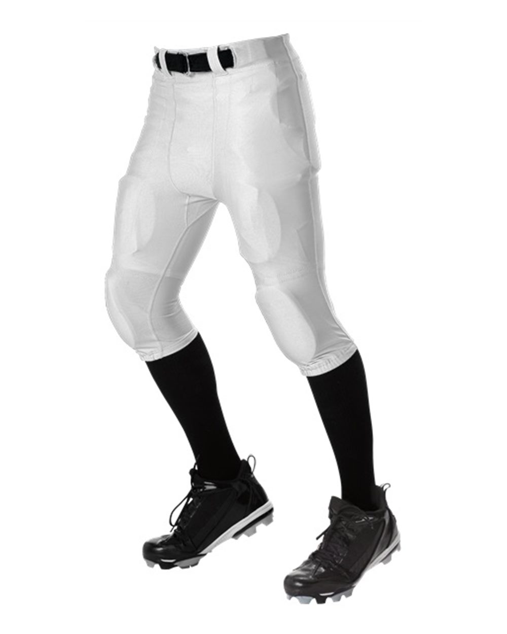 11 oz./yd_, 85/15 nylon/spandex Five panel back construction with no-fly crotch 100 denier tricot mesh thigh pockets with self-material spandex knee pad...