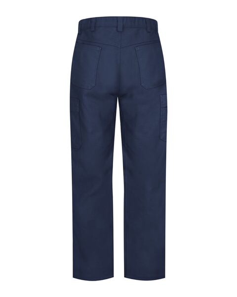 8 oz./yd_, (Canvas) 54/42/4 polyester/cotton//spandex Soil release and color retention Concealed, no-scratch button closure at waistband Two...