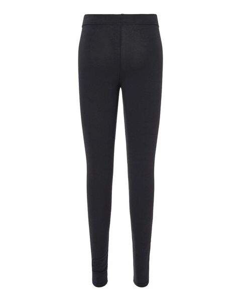 6.5 oz./yd_, 90/10 cotton/spandex Elastic waistband Full-length legging Loop label