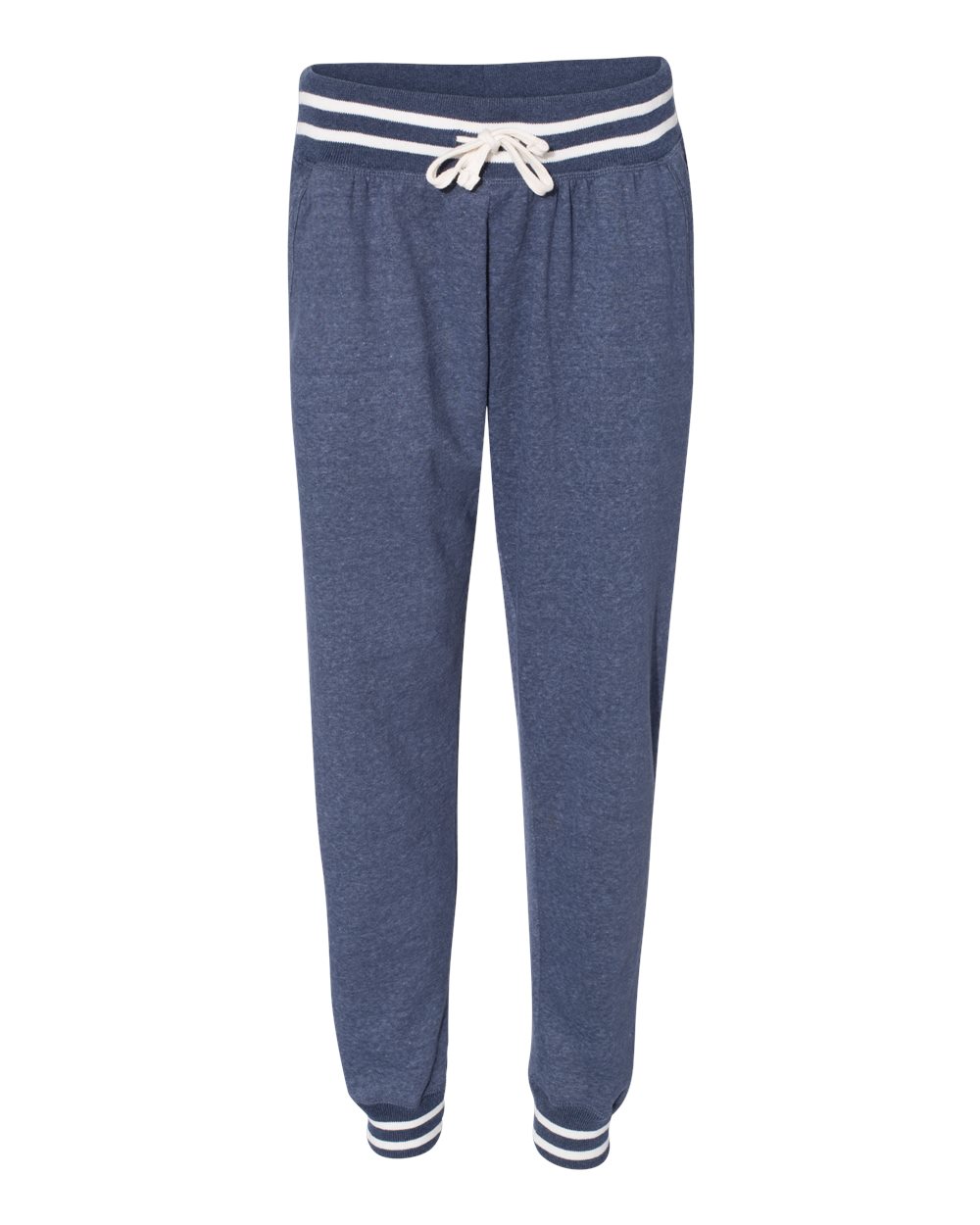 6.5 oz./yd_, 60/40 cotton/polyester single-dyed fleece 1x1 ribbed yarn-dyed striped cuffs and waistband Off-white external drawcord Side pockets Tear...