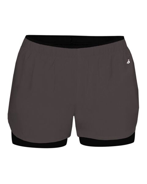 90/10 polyester/spandex moisture-management inner short 100% woven polyester moisture-management fabric outer shell Stretch body fit on inner short...