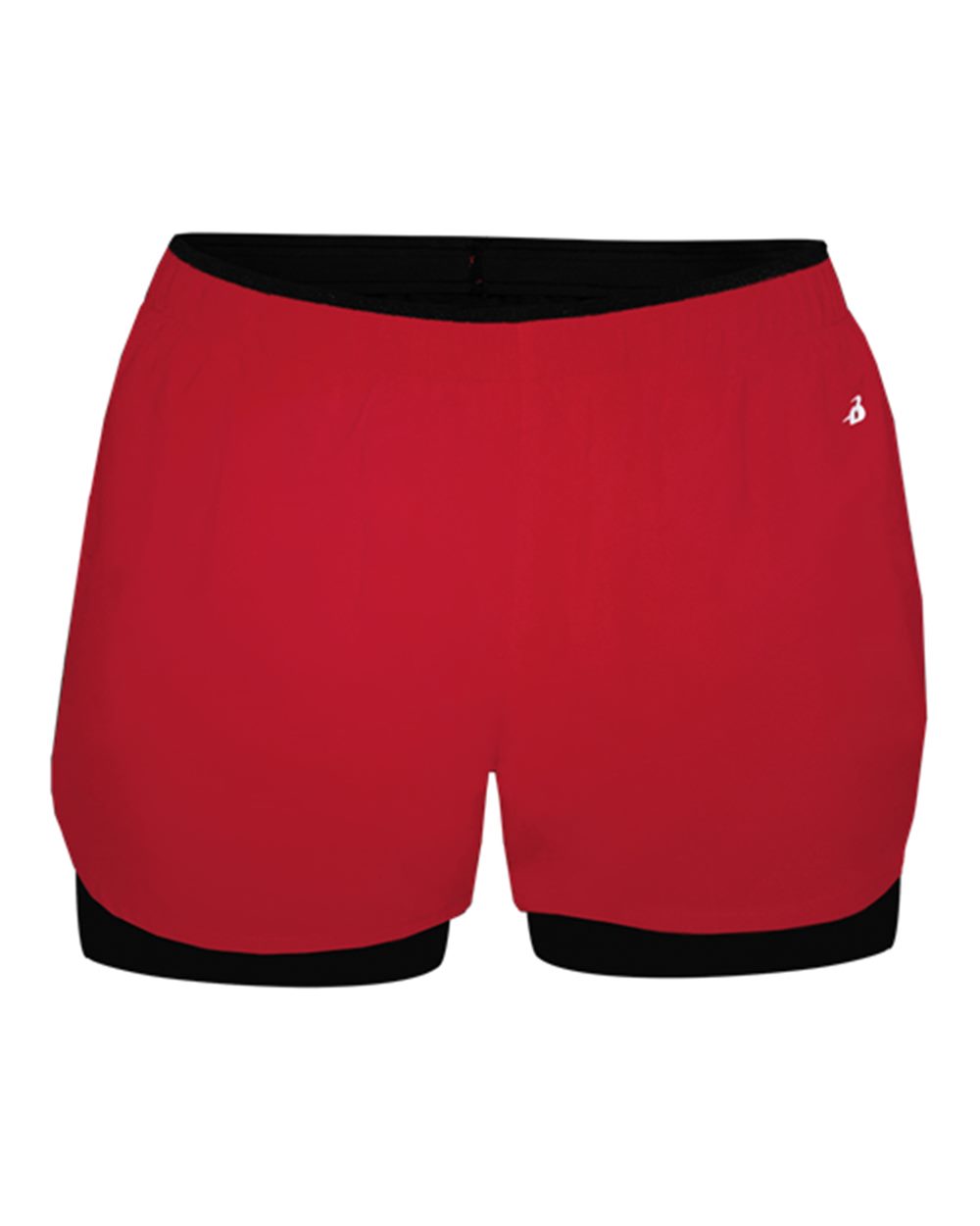 90/10 polyester/spandex moisture-management inner short 100% woven polyester moisture-management fabric outer shell Stretch body fit on inner short...