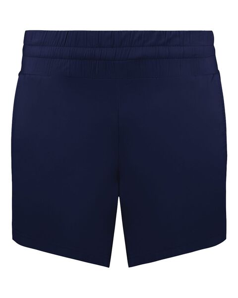 6.3 oz./yd_, 89/11 recycled polyester/spandex Moisture-management properties Covered elastic waistband with internal drawcord Front pockets Inner...