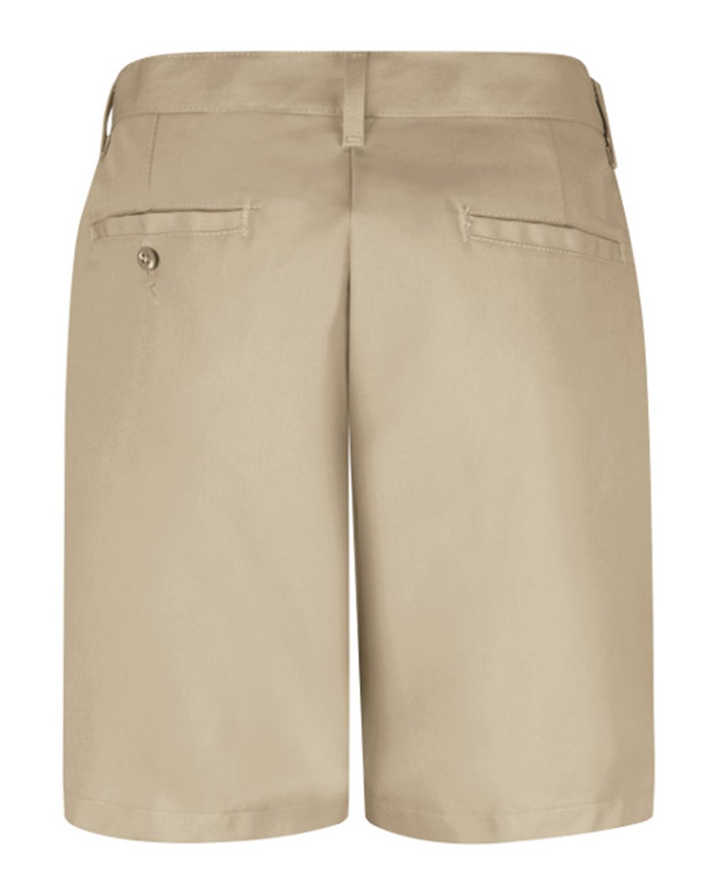 7.5 oz./yd_, 65/35 polyester/cotton twill Two front slack-style pickets, 8" inseam Two set-in hip pockets with darts, left with button close