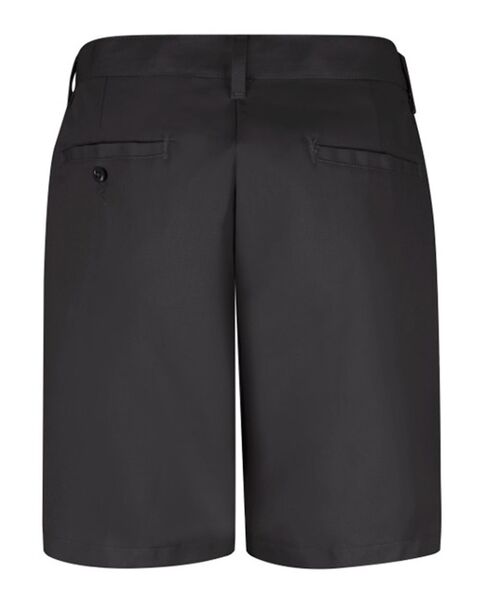 7.5 oz./yd_, 65/35 polyester/cotton twill Two front slack-style pickets, 8" inseam Two set-in hip pockets with darts, left with button close