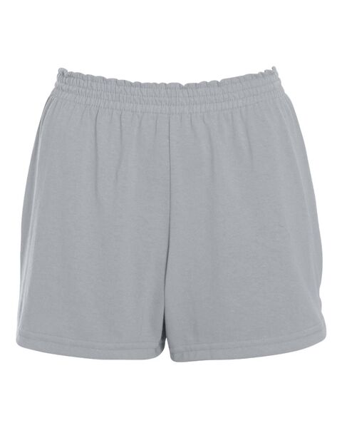 Heavyweight 50/50 polyester/cotton jersey knit Women's fit Elastic waistband V-notch leg 3-inch inseam Double needle hemmed bottom