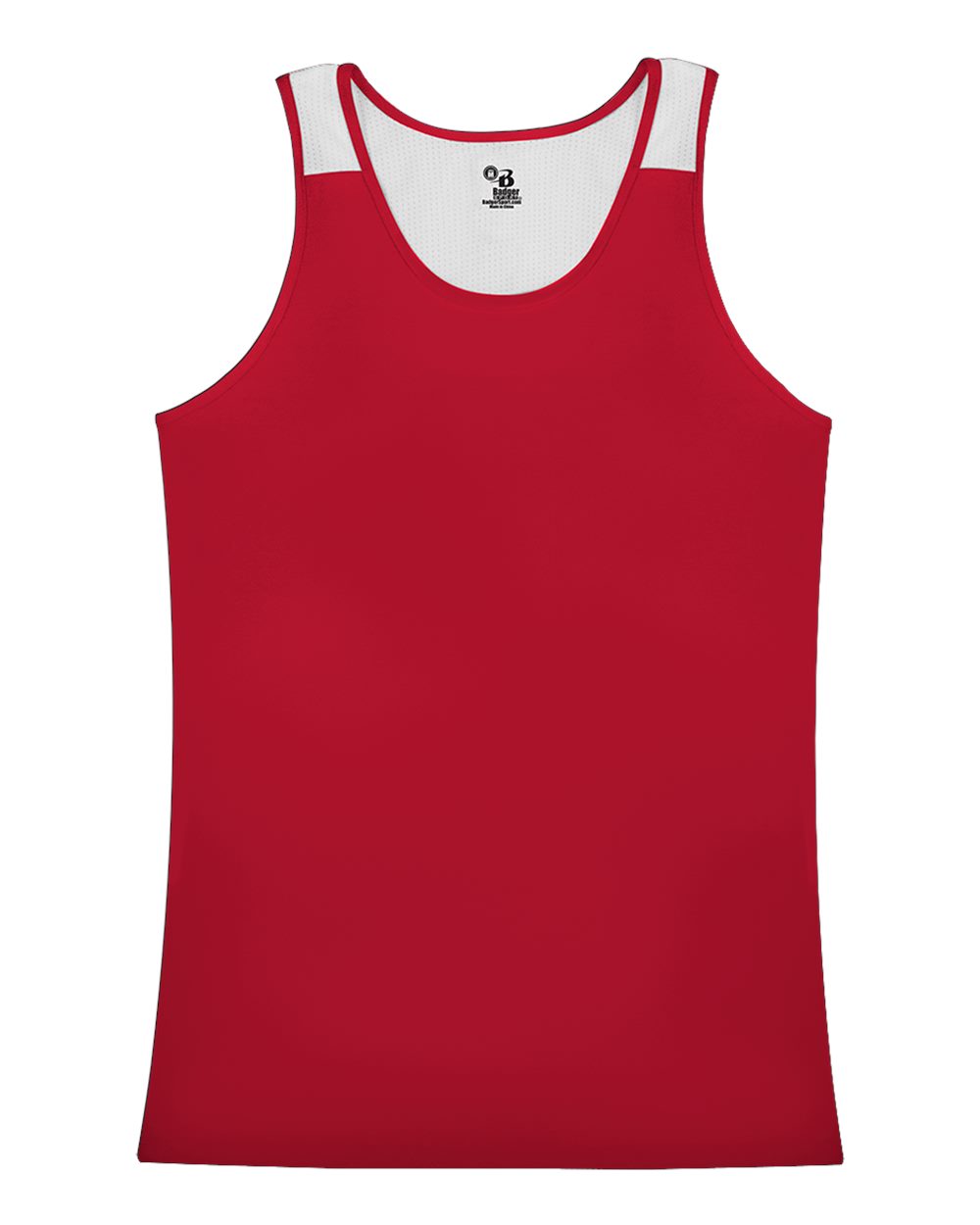 100% polyester with moisture-management/antimicrobial properties Contrast arrow mesh back panel Self-fabric binding neck and armhole...