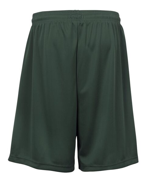 100% polyester moisture-management/antimicrobial performance fabric 1.5" covered elastic Double-needle hem 6" Inseam Badger heat seal logo...