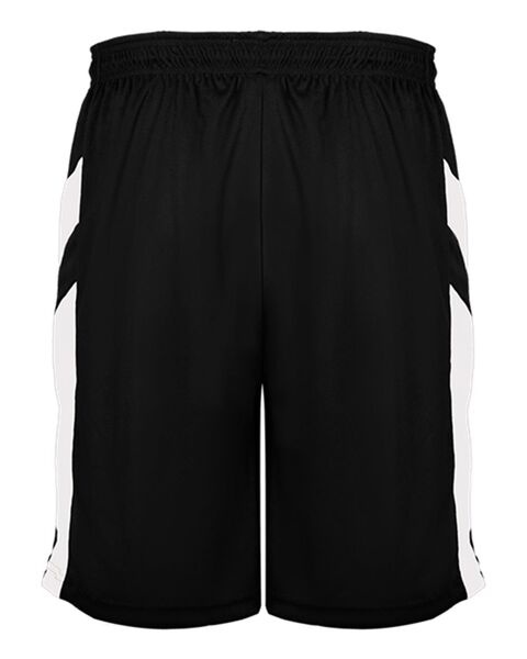 100% polyester with moisture-management/antimicrobial properties Collegiate Cut Covered elastic waistband 6" inseam Reversible short...