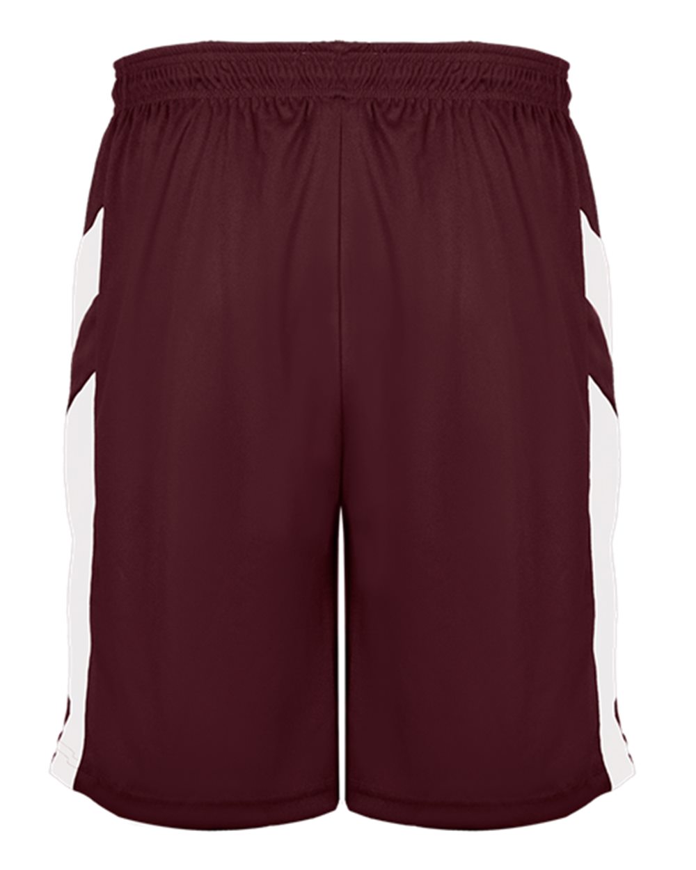 100% polyester with moisture-management/antimicrobial properties Collegiate Cut Covered elastic waistband 6" inseam Reversible short...