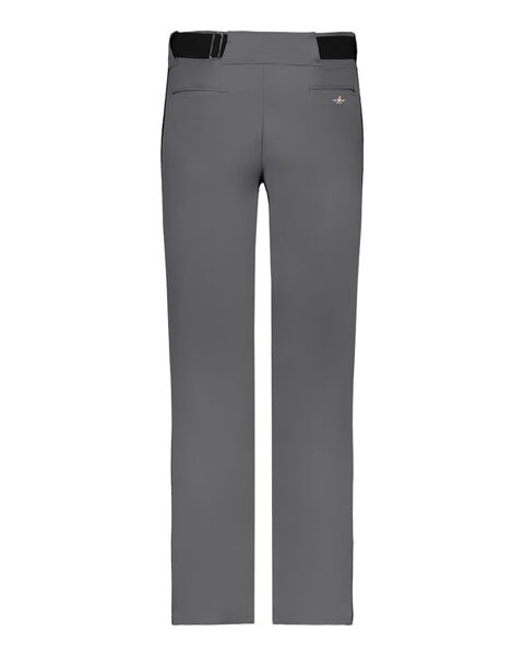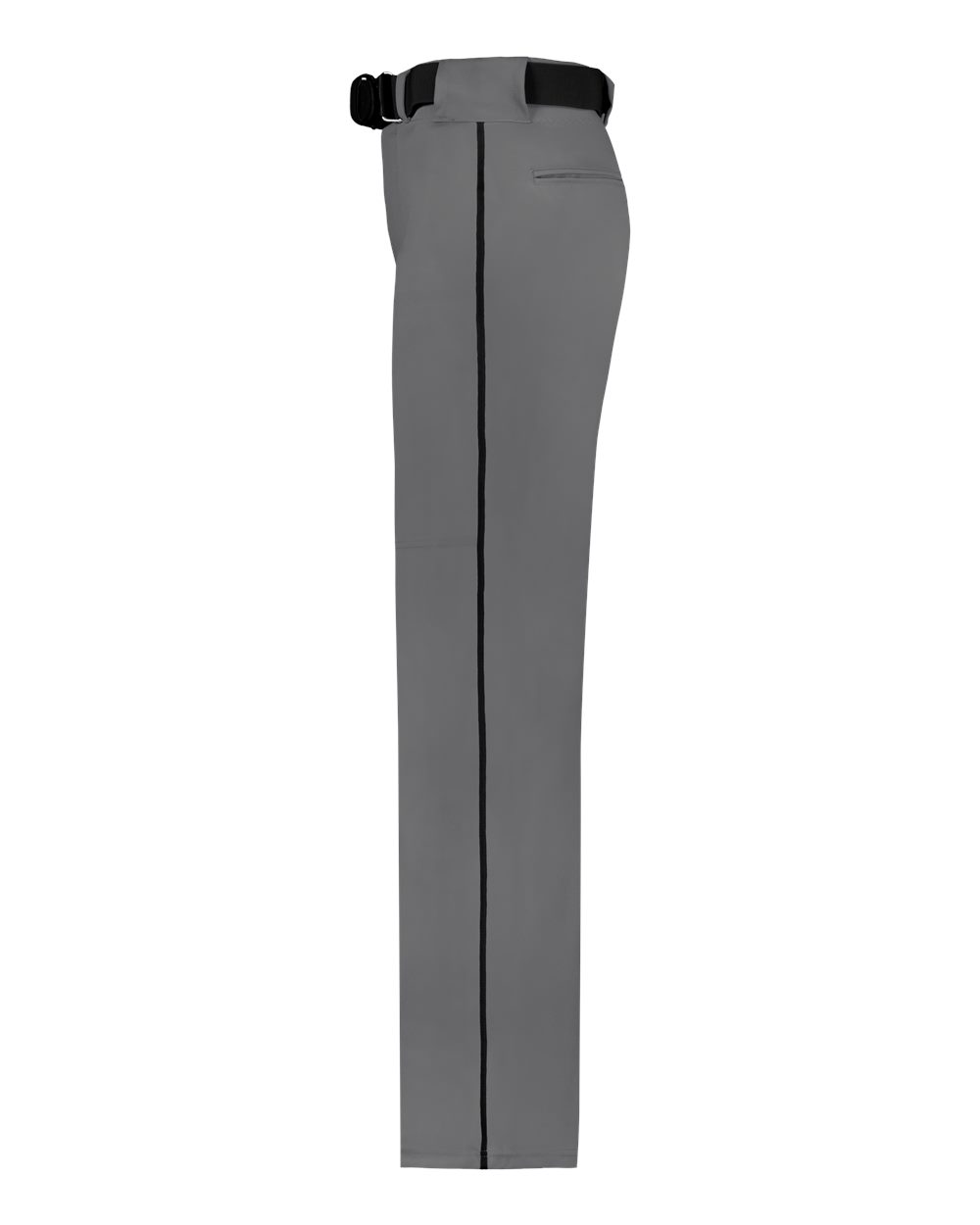 12 oz./yd_, 100% double knit polyester Wide leg open bottom Open bottom non-traditional Contrasting stripe 3/16" down sides Five pro-style belt...