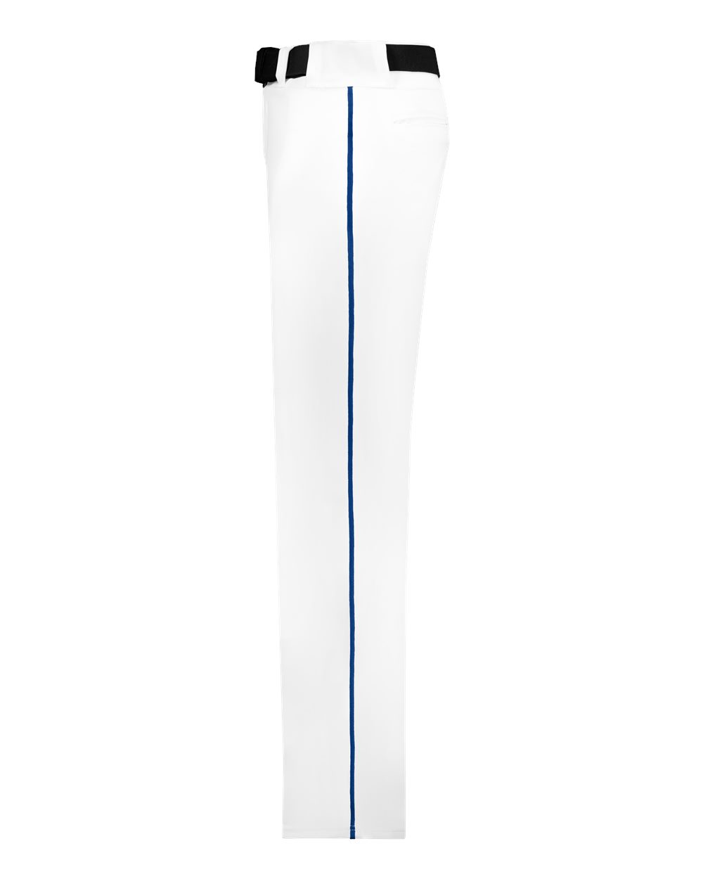 12 oz./yd_, 100% double knit polyester Wide leg open bottom Open bottom non-traditional Contrasting stripe 3/16" down sides Five pro-style belt...