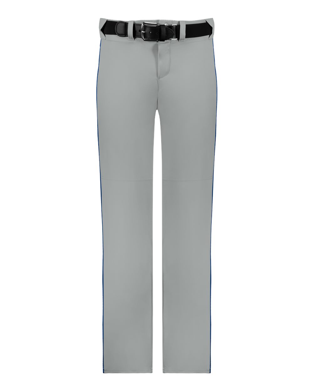 12 oz./yd_, 100% double knit polyester Wide leg open bottom Open bottom non-traditional Contrasting stripe 3/16" down sides Five pro-style belt...