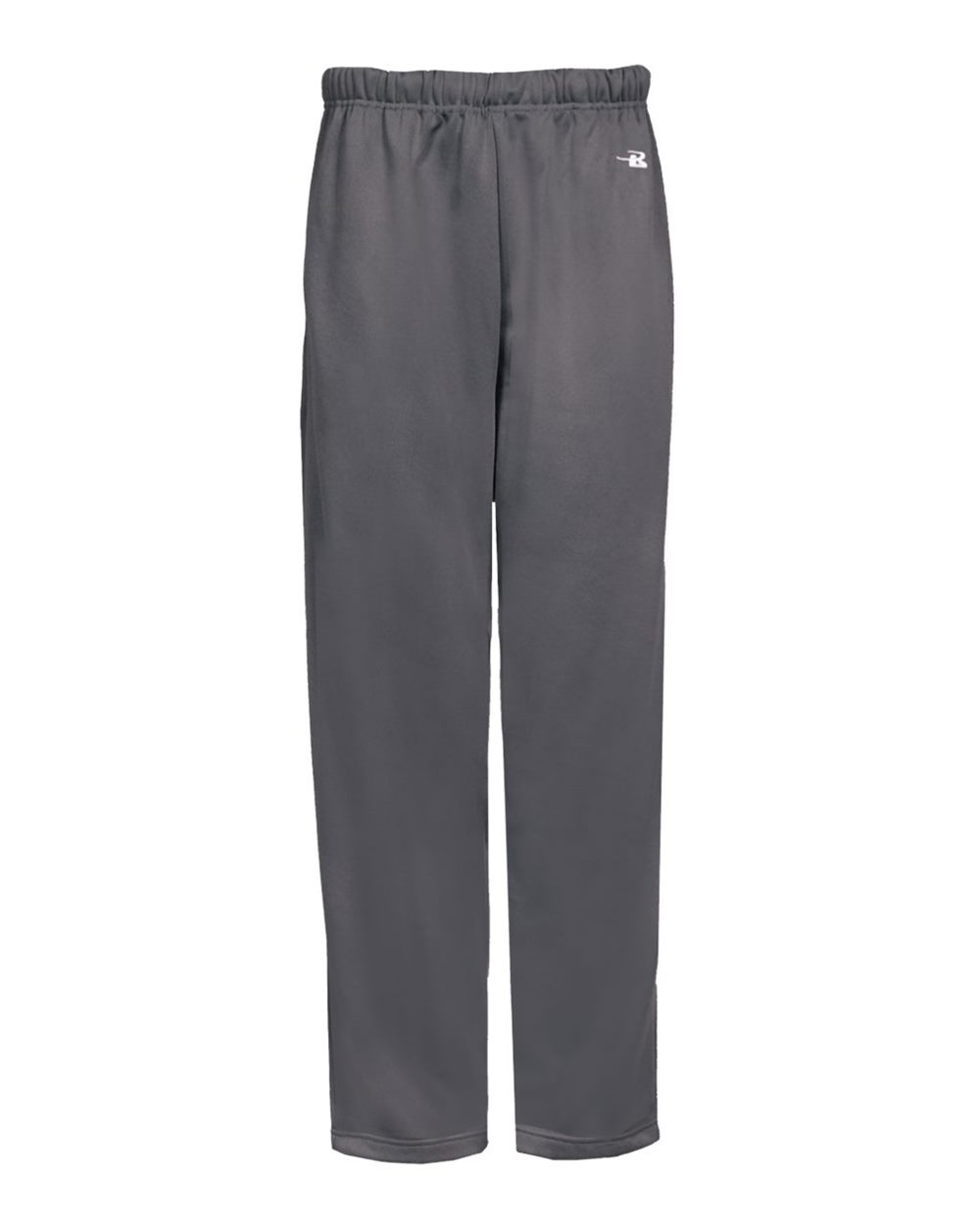 100% polyester moisture-management fleece Covered elastic waistband and drawcord Two deep side pockets Double-needle bottom hem...