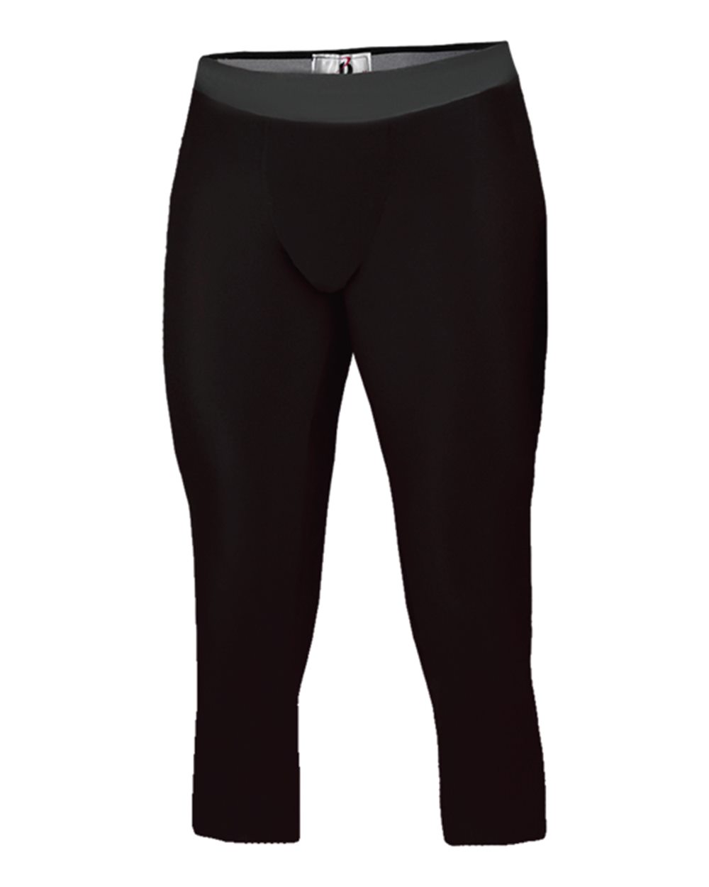 83/17 polyester/spandex moisture-management fabric Tight fit 1 1/2" plush exposed elastic waistband with logo Center panel with flat lock...