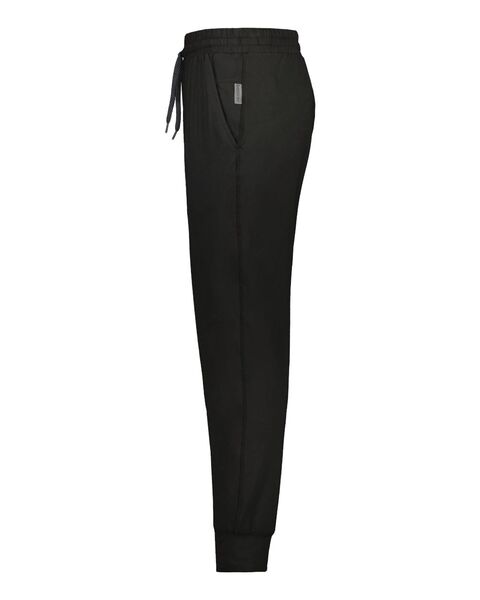 6.3 oz./yd_, 89/11 recycled polyester/spandex Moisture wicking Covered elastic waistband with internal drawcord Front pockets Inner pocket inside left...