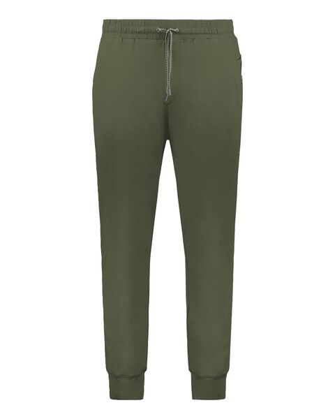 6.3 oz./yd_, 89/11 recycled polyester/spandex Moisture wicking Covered elastic waistband with internal drawcord Front pockets Inner pocket inside left...
