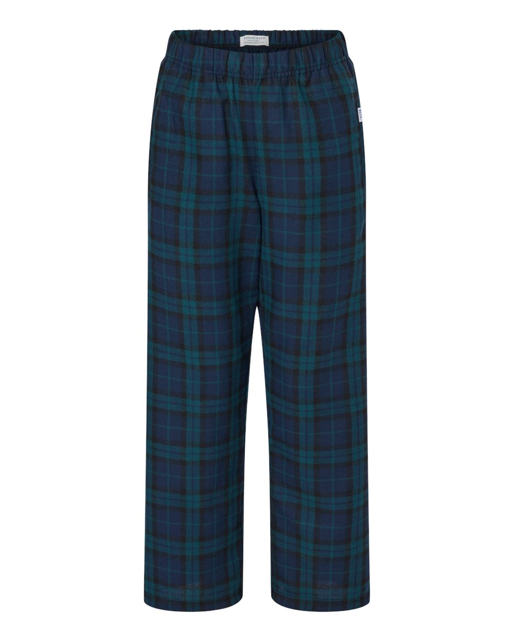 4.3 oz./yd_, 100% poly flannel Seamed waistband Turnback finish at leg opening Welt pockets with self-pocket bags Woven label