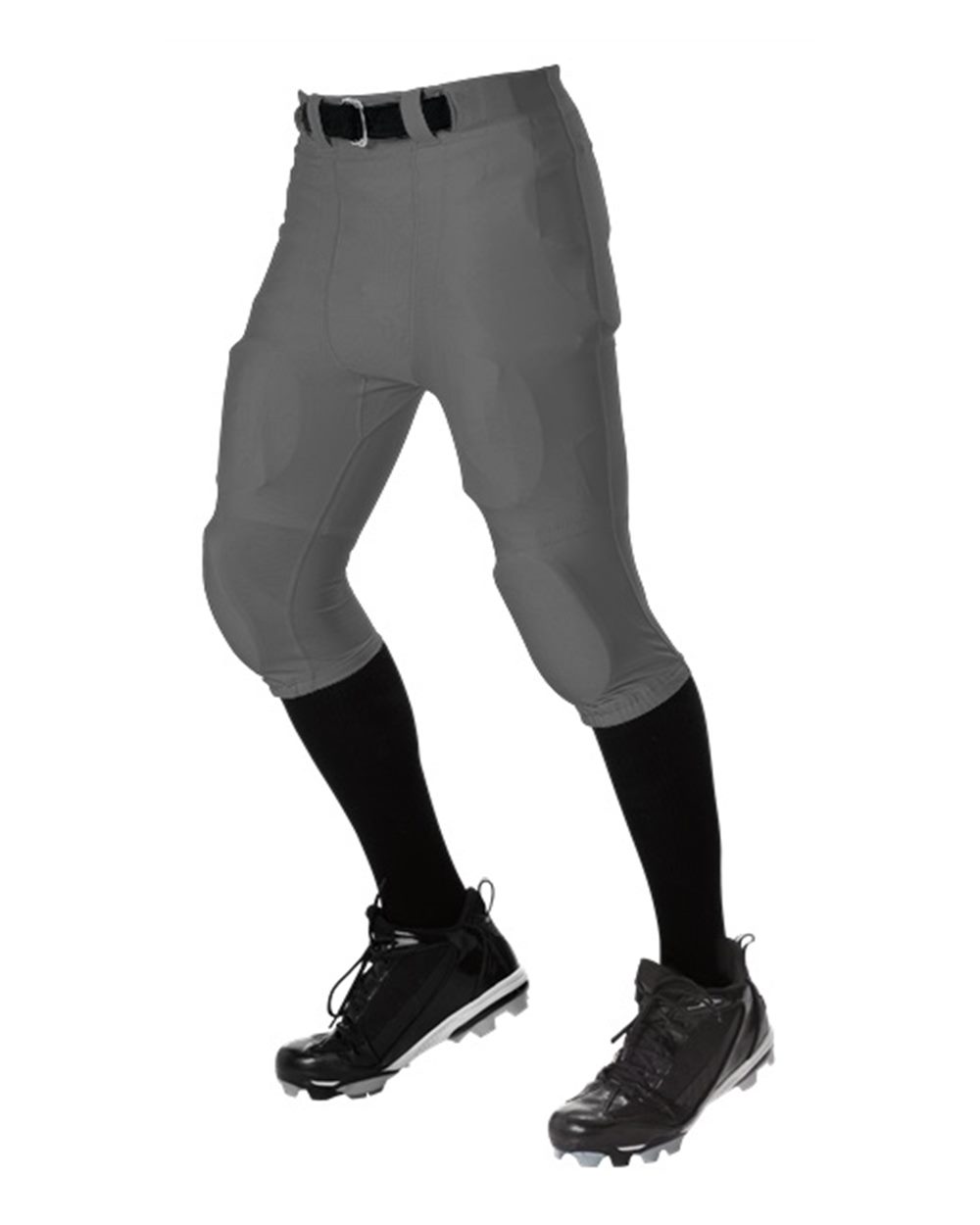 11 oz./yd_, 85/15 nylon/spandex Five panel back construction with no-fly crotch 100 denier tricot mesh thigh pockets with self-material spandex knee pad...