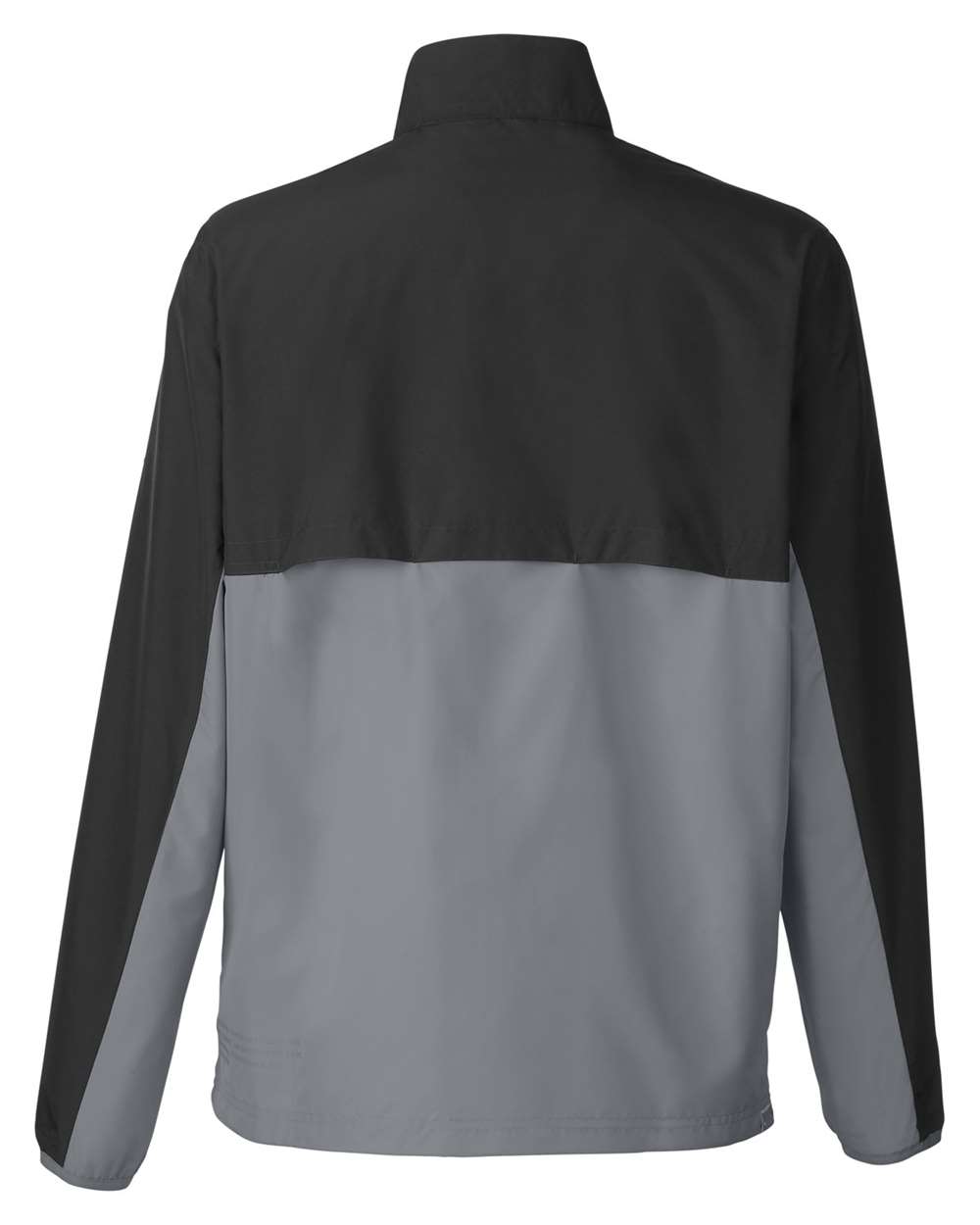 2.8 oz./yd_ (US), 4.7 oz./L yd (CA), 100% recycled polyester Moisture-wicking performance UV resistant 50+ fabric Full-Zip Cat logo on left sleeve