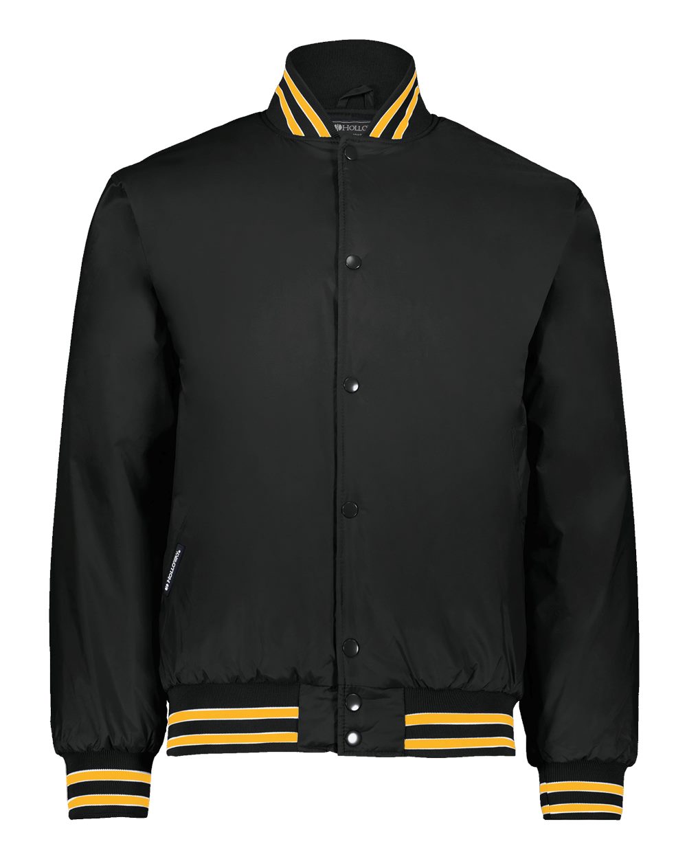 - Ribbed-trim collar, cuffs and bottom hem