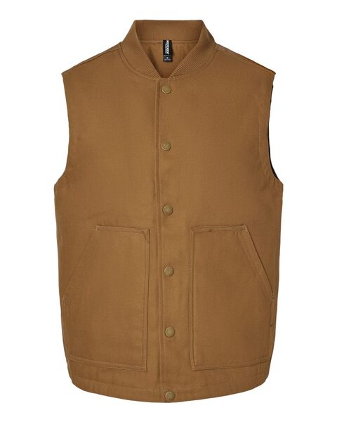 10.6 oz./yd_, (360gm) 100% cotton canvas shell Hyper-loft quilted insulation Heavy duty brass snaps 2x2 ribbing at collar Locker patch center back...