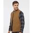 10.6 oz./yd_, (360gm) 100% cotton canvas shell Hyper-loft quilted insulation Heavy duty brass snaps 2x2 ribbing at collar Locker patch center back...
