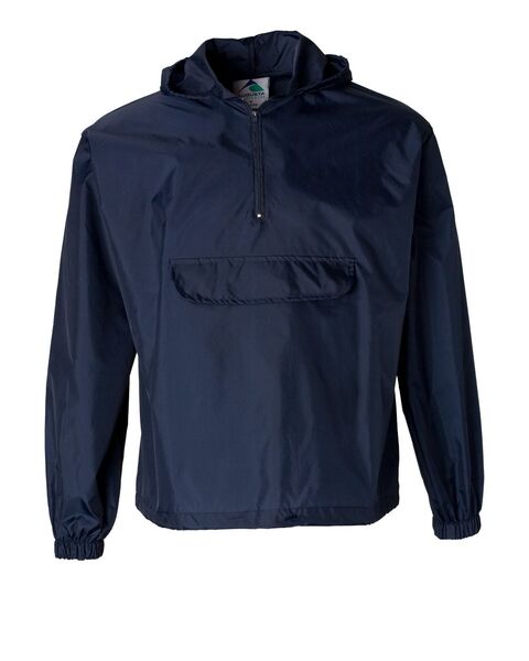 2.1 oz./yd_, 100% nylon taffeta Water resistant Hood with drawcord Elastic cuffs Folds up into its own zippered front pocket Set in sleeves Open...