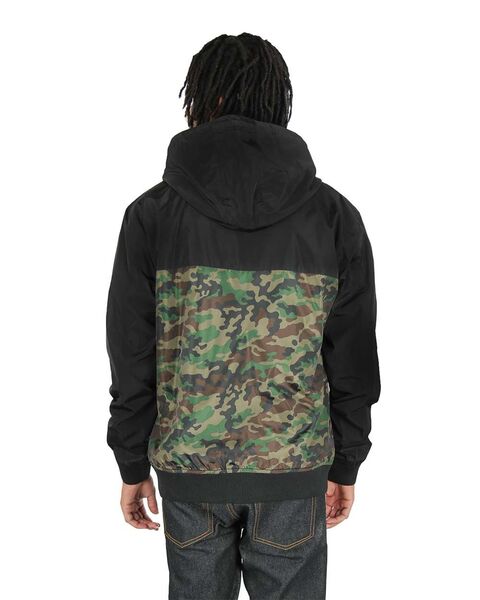Shell: 3 oz. Lining: 5.6 oz., 100% polyester Water-resistant shell Zip front closure Double-layered hood Side pockets Durable cuffed sleeves