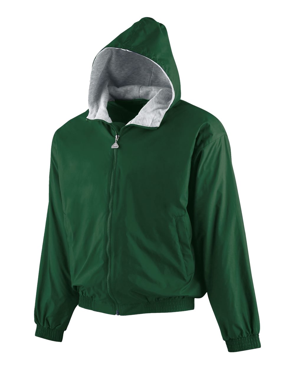 7.08 oz./yd_, 100% nylon taffeta outer shell Body, sleeves and hood lined with cotton grey heather fleece Center front zipper with inside storm flap...
