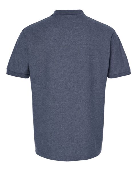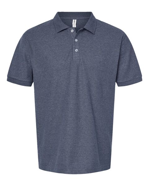 6.7 oz./yd_, 50/50 USA premium cotton/polyester Pique textured knit Contoured welt collar and cuffs Three-button placket Banded sleeves Double-needle...