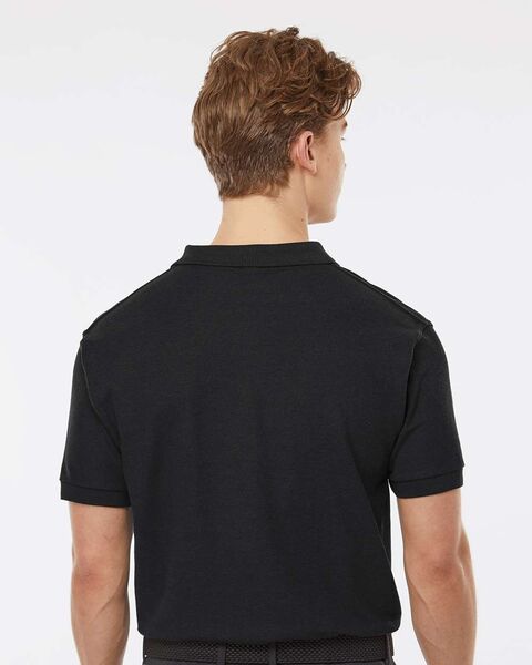 6.7 oz./yd_, 50/50 USA premium cotton/polyester Pique textured knit Contoured welt collar and cuffs Three-button placket Banded sleeves Double-needle...