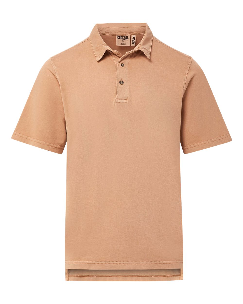 - Three-button placket with ivory buttons
